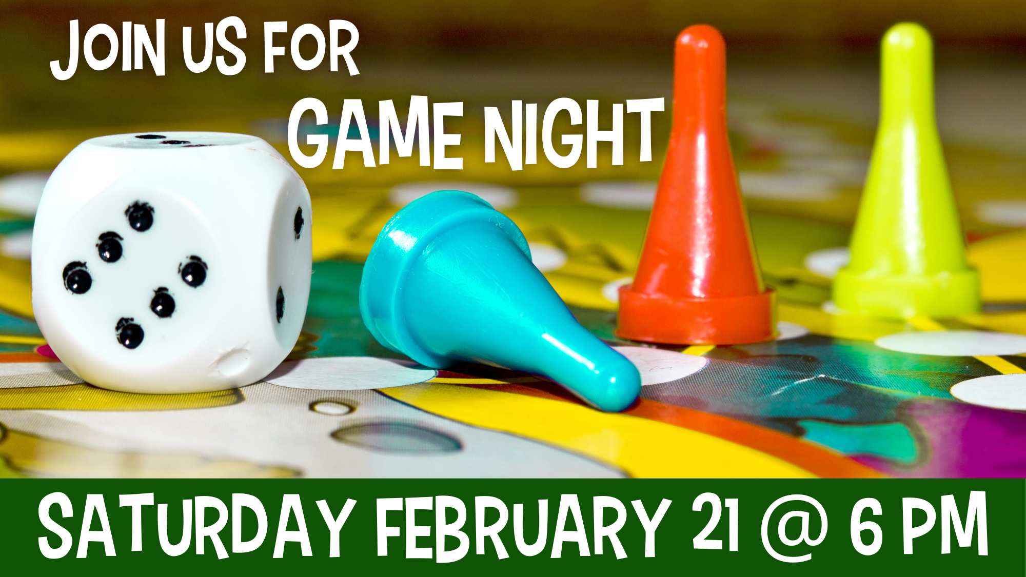 For folks of all ages – Join us on Saturday, February 21 @6:00. Bring your own games or play some of ours! Everyone is welcome and we encourage you to bring friends and family along. Come ready to have fun with people of all ages!