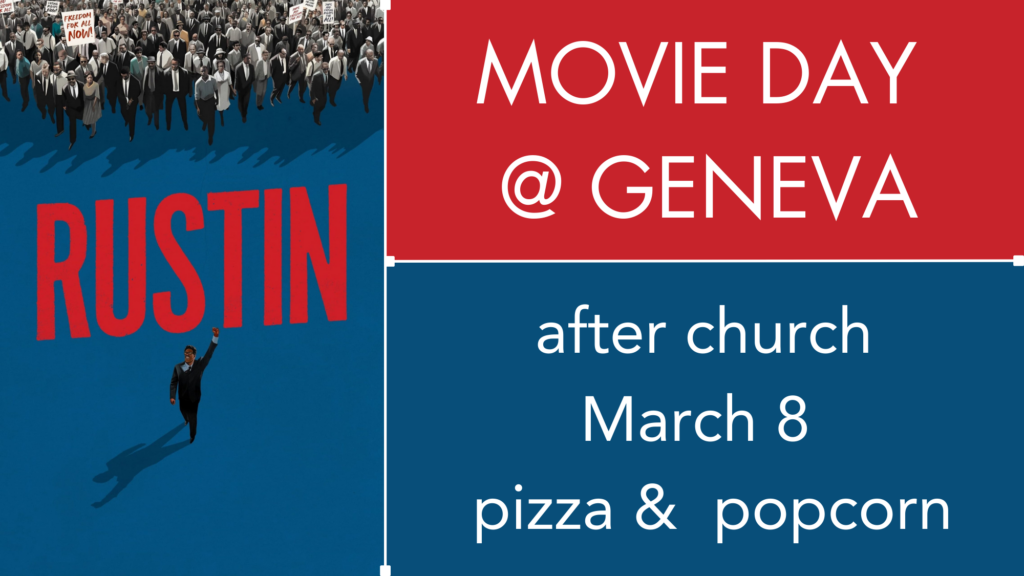 On Sunday, March 8, you’re invited to stay after worship for a showing of the 2023 movie “Rustin”, about the late human rights leader Bayard Rustin, who was an openly gay civil rights activist and the primary organizer of the 1963 March on Washington. Pizza and popcorn will be served. You can sign up to attend the movie at the kiosk in the gathering space.